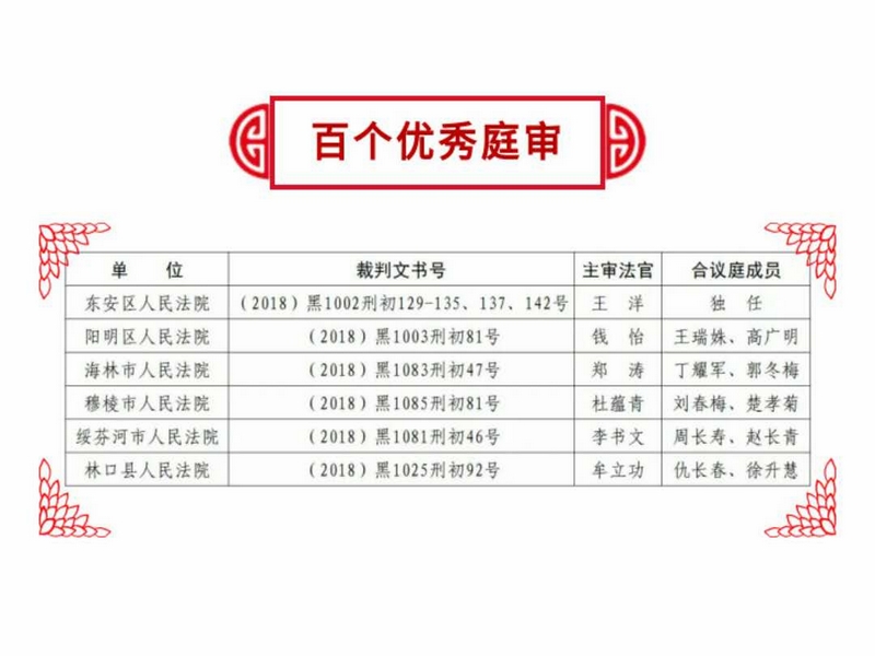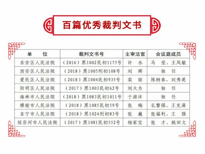 喜讯!绥芬河市法院入选“百个优秀庭审”及“百篇优秀裁判文书”