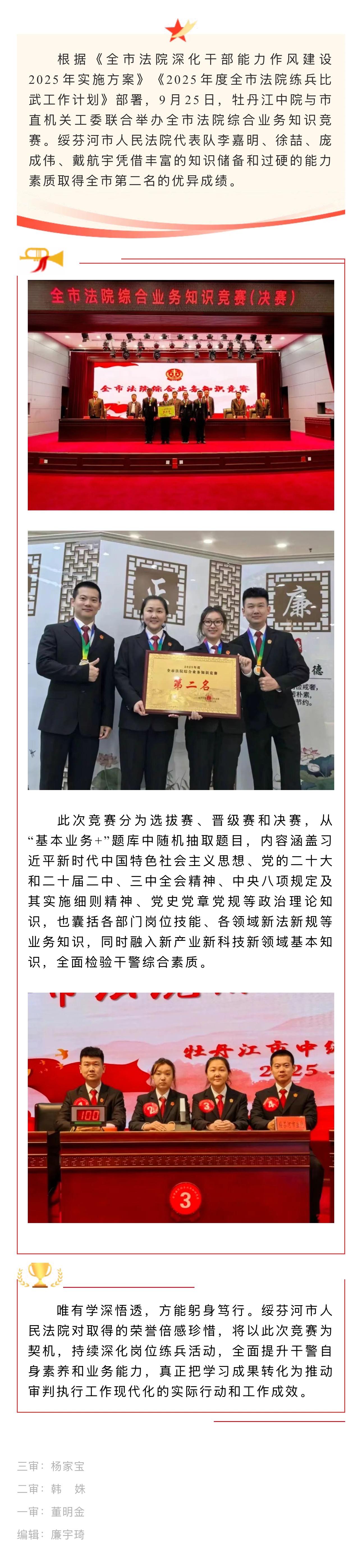 【国庆特辑】喜报!绥芬河市人民法院在全市法院综合业务知识竞赛中喜获佳绩