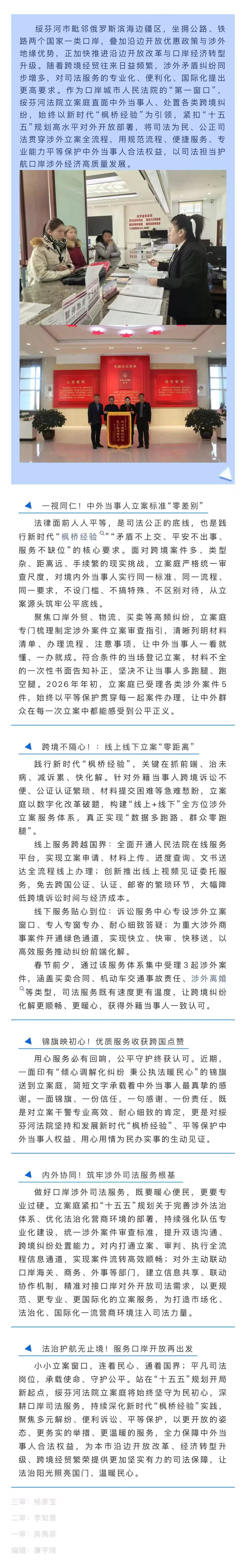 深化“枫桥经验”实践 优化口岸司法服务——绥芬河市人民法院涉外立案工作赋能沿边开放新发展